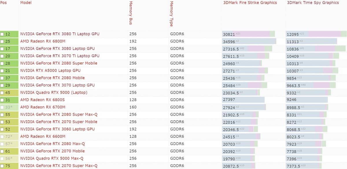 ในแง่ของกราฟิกนั้น GPU Intel Arc A730M ได้รับการวัดประสิทธิภาพจากทั้งผู้ผลิตแล็ปท็อปและผู้ใช้งานแล็ปท็อปไปแล้ว โดยประสิทธิภาพได้รับการวัดจาก benchmark ของ 3DMark TimeSpy และ 3DMark Fire Strike