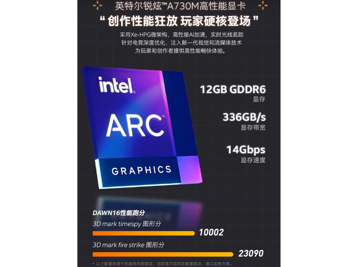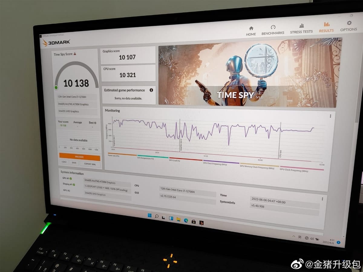 คะแนน benchmark ที่หลุดมานั้นมาจากเจ้าของแล็ปท็อป Machenike DAWN 16 นิ้ว ซึ่งเป็นแล็ปท็อปเครื่องแรกที่วางจำหน่ายพร้อม GPU Intel Arc A730M ระดับ high-end