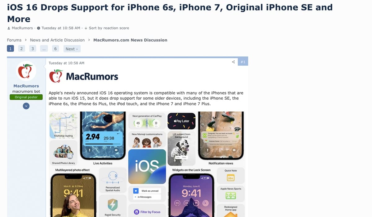 แต่แนวทางปฏิบัติของ Apple ก็เป็นแบบนี้มานานแล้ว ซึ่งดูจากฟีเจอร์ต่างๆ ของ iOS 16 จะใช้งานกับ iPhone ที่ใช้งานชิป A12 Bionic ขึ้นไปเท่านั้น