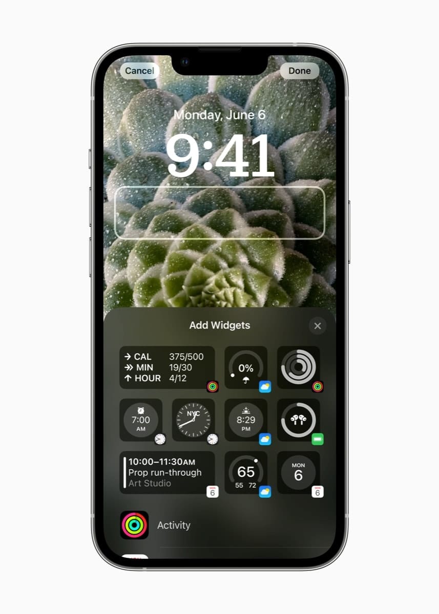 หน้าจอล็อคใน iOS 16 มอบความเป็นส่วนตัว ความสวยงาม และเป็นประโยชน์มากขึ้น เอฟเฟ็กต์ใหม่แบบหลายระดับชั้นทำให้ตัวแบบในรูปภาพโดดเด่นอย่างสวยงามอยู่ด้านหน้าเวลาที่แสดงบนหน้าจอล็อค ทำให้ภาพดูมีมิติ ผู้ใช้ยังสามารถเปลี่ยนหน้าตาของวันที่และเวลาด้วยลักษณะอักษรและตัวเลือกสีที่สื่อความหมาย