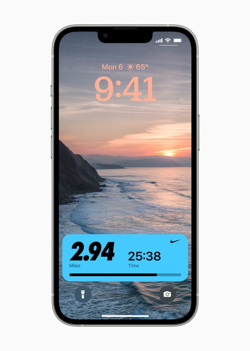 หน้าจอล็อคยังมาพร้อมวิดเจ็ตที่ได้รับแรงบันดาลใจมาจากกลไกหน้าปัด Apple Watch ทำให้มองเห็นข้อมูลที่ต้องการได้โดยง่าย เช่น กิจกรรมในปฏิทินที่กำลังจะเกิดขึ้น สภาพอากาศ ระดับแบตเตอรี่ การตั้งปลุก เขตเวลา ความคืบหน้าของวงแหวนกิจกรรม และอีกมากมาย
