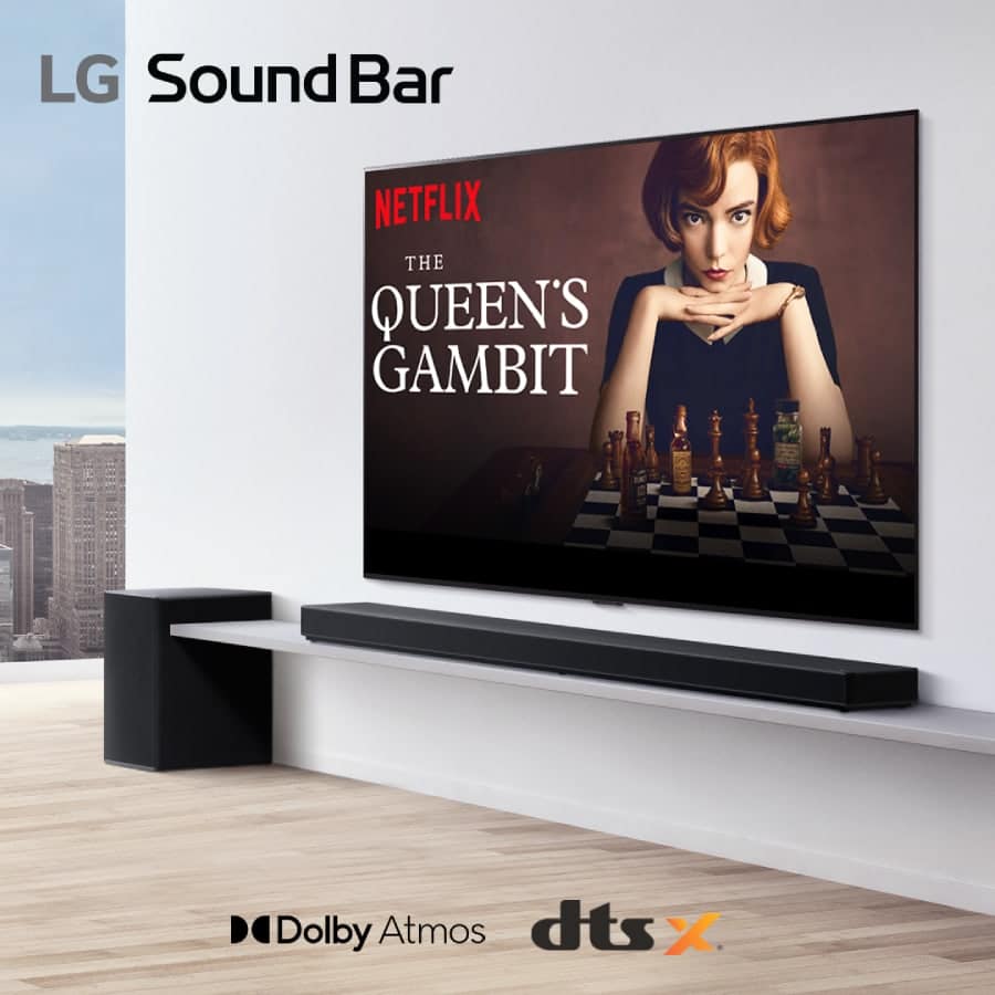 เปลี่ยนห้องนั่งเล่นของคุณให้เป็นโรงภาพยนตร์ส่วนตัวด้วย LG SP11RA ซาวด์บาร์ที่มาพร้อมลำโพง 770 วัตต์ แบบ 7.1.4 ชาแนล ถือเป็นครั้งแรกที่ซาวด์บาร์ของแอลจีมาพร้อมลำโพง 4 ตัวด้านบนที่จะช่วยเสริมการส่งพลังเสียงขึ้นสู่ด้านบนนอกเหนือจากลำโพงที่อยู่ด้านหน้า ทำให้คุณรู้สึกได้ถึงพลังเสียงรอบตัว ดื่มด่ำยิ่งขึ้นในทุกฉาก นอกจากนี้ระบบ AI Room Calibration ยังใช้ไมโครโฟนในซาวด์บาร์ช่วยตรวจจับตำแหน่งติดตั้งซาวด์บาร์เพื่อวิเคราะห์และปรับแต่งเสียงให้เหมาะกับสภาพห้องของคุณ
