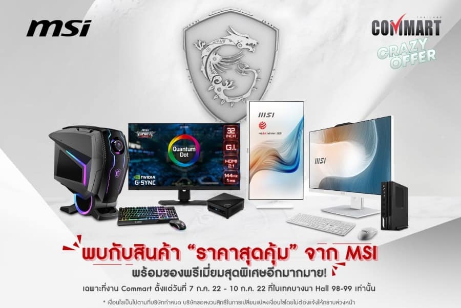MSI ตบเท้าเข้าสู่งาน Commart Crazy Offer 2022 พร้อมจัดโปรโมชั่นสินค้าราคาพิเศษและของแถมพรีเมี่ยมหลายรายการ! นอกจากนี้ทาง MSI ยังมีกิจกรรมดีๆ และของแถมสุดพรีเมี่ยม