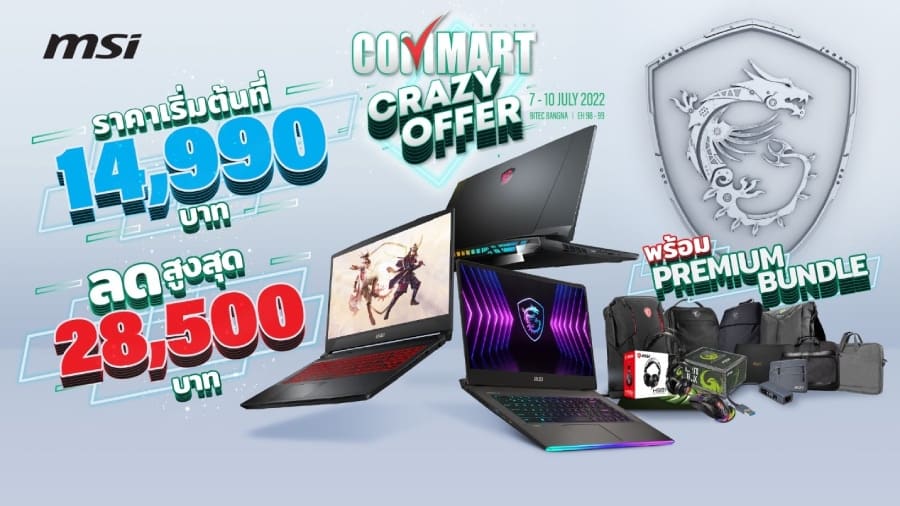 สำหรับงาน Commart Crazy Offer ในครั้งนี้ จะมีขึ้นในวันที่ 7 กรกฎาคม 2022 – 10 กรกฎาคม 2022 ที่ ศูนย์นิทรรศการและการประชุมไบเทค บางนา โดยบูธของ MSI จะเป็นบูธหมายเลข B12 Hall EH98-99