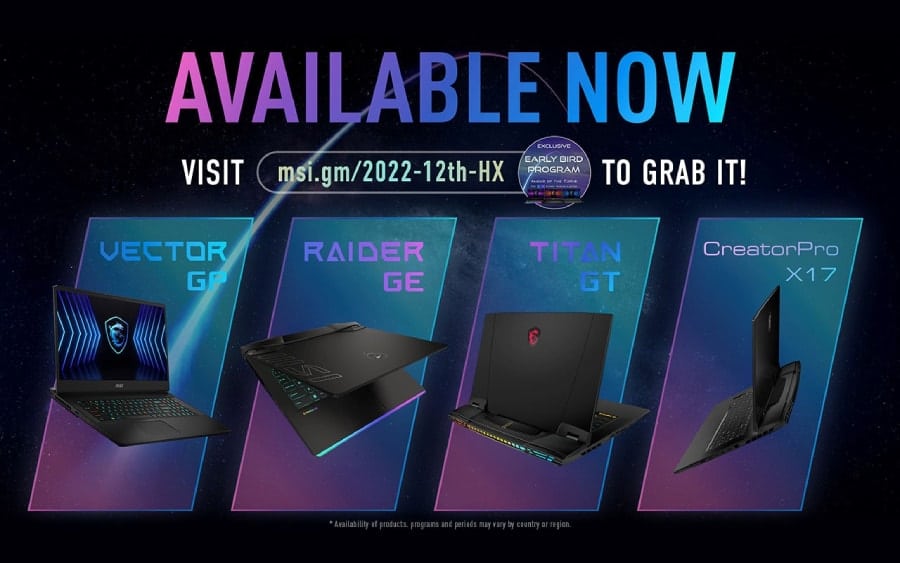 MSI ซึ่งเป็นแบรนด์ชั้นนำของอุปกรณ์เกมมิ่งและนวัตกรรมโซลูชั่นสำหรับธุรกิจ ได้เปิดตัวโน้ตบุ๊กซีรี่ส์ HX รุ่นล่าสุดที่มาพร้อมหน่วยประมวลผลซีรี่ส์ 12th Gen Intel HX, กราฟิกการ์ดสูงสุด NVIDIA GeForce RTX 3080Ti, และการระบายความร้อนรุ่นใหม่เอกสิทธิ์เฉพาะของMSI ที่จะช่วยผลักดันประสิทธิภาพของโน้ตบุ๊กซีรี่ส์นี้ขึ้นไปจนถึงขีดสุด
