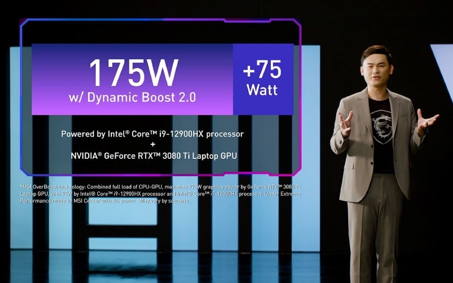 และด้วยการทำงานร่วมกับกราฟิกการ์ด NVIDIA GeForce RTX 3080 Ti ผ่านเทคโนโลยี OverBoost Titan GT77 จะสามารถทำงานได้อย่างเต็มพิกัดทั้งในส่วนของหน่วยประมวลผลและกราฟิกการ์ด โดยมีกำลังการทำงานรวมกันสูงสุดถึง 250 วัตต์