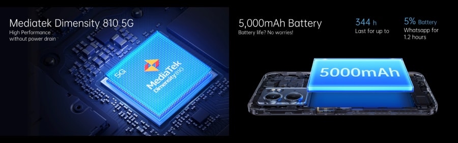 เต็มที่ไปกับ OPPO A77 5G สมาร์ตโฟนที่รองรับนวัตกรรม 5G เป็นรุ่นแรกของปีจาก OPPO A Series ยกเครื่องประสิทธิภาพอันทรงพลังจากชิปเซ็ต MediaTek Dimensity 810 SoC ล่าสุดที่พัฒนาจากแพลตฟอร์ม Snapdragon 480 5G รุ่นก่อนหน้า ทำให้ประสิทธิภาพของ CPU สูงขึ้นถึง 44% มอบการตอบสนองที่ดีขึ้นสำหรับการใช้งานและอัตราเฟรมที่สูงขึ้นเมื่อเล่นเกม พร้อมมอบหน่วยความจำทั้ง RAM 6GB และ ROM 128GB โดยมี RAM Expansion ให้ผู้ใช้สามารถเพิ่ม RAM เสมือนสูงสุดถึง 5GB เพื่อประสบการณ์ที่รวดเร็วและราบรื่นยิ่งขึ้นเมื่อใช้งานหลายแอปพร้อมกัน