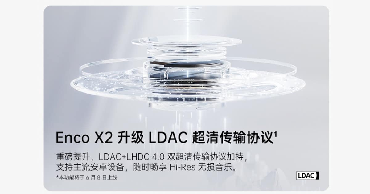 OPPO ได้ประกาศเรื่องการเพิ่มการซัพพอร์ตตัวแปลงสัญญาณ LDAC ให้กับ Enco X2 ไปเมื่อ 8 มิถุนายน และตามสัญญา บริษัทได้เปิดตัวการอัปเดตเฟิร์มแวร์ที่มาพร้อมตัวแปลงสัญญาณ LDAC ให้กับหูฟัง Enco X2 การอัปเดตครั้งนี้ทำให้ผู้ใช้ Android 8.0 ขึ้นไปสามารถสลับระหว่าง LDAC และ LHDC ได้จากการตั้งค่า