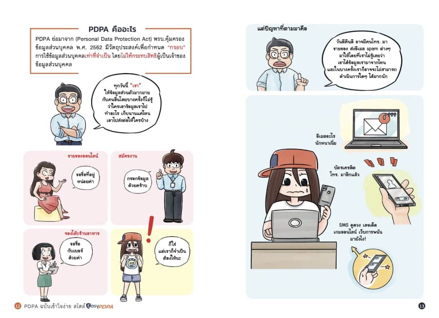 เพื่อเป็นตัวช่วยในการสร้างความเข้าใจนี้ คุณรับขวัญ ชลดำรงค์กุล และ คุณอมรเชษฐ์ จินดาอภิรักษ์ สองผู้ร่วมก่อตั้ง EasyPDPA แห่งบริษัท อีซี่ คอมพานี กรุ๊ป จำกัด บริษัทให้คำปรึกษา และ LegalTech ด้าน PDPA ชั้นนำของประเทศไทย ได้ร่วมกับขายหัวเราะสตูดิโอ จัดทำหนังสือ “PDPA ฉบับเข้าใจง่าย” ซึ่งเป็นหนังสือที่เล่าเรื่อง PDPA ในทุกแง่มุมที่สำคัญที่เจ้าของข้อมูลส่วนบุคคล และองค์กรผู้ใช้ข้อมูลส่วนบุคคลควรรู้ โดยเล่าออกมาให้คนทั่วไปเข้าใจได้ง่าย ผ่านการใช้ภาพการ์ตูน ซึ่งในเล่มจะยังพบกับการแนะนำเครื่องมือ และเอกสารในการเตรียมความพร้อมด้าน PDPA สำหรับองค์กร และ use-case ด้าน PDPA กว่า 15 สถานการณ์ ซึ่งกลั่นกรองมาจากประสบการณ์การให้คำปรึกษาบริษัทมากว่าร้อยแห่ง หนังสือเล่มนี้เหมาะกับบุคคลทั่วไป เจ้าของธุรกิจ ผู้บริหาร และผู้ที่ใช้ข้อมูลส่วนบุคคลทุกคน อ่านหนังสือตัวอย่างและสั่งซื้อได้แล้ววันนี้ที่ช่องทางออนไลน์ผ่านเว็บไซต์ https://www.easypdpa.com/pdpa-book-cartoon หรือสอบถามข้อมูลเพิ่มเติมได้ที่ Facebook: EasyPDPA รีบจองด่วนหนังสือจัดพิมพ์จำนวนจำกัด