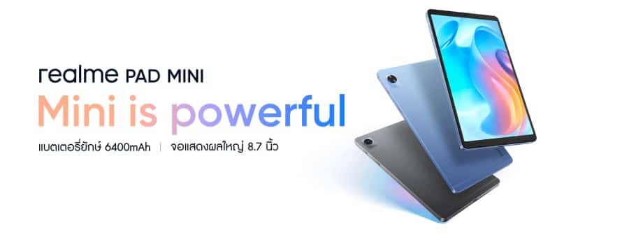 - realme Pad Mini รุ่น 3+32 LTE ราคา 5,999 บาท ในช่องทาง realme Brand Shop ตั้งแต่วันที่ 11 มิถุนายนเป็นต้นไป รับฟรี! realme Buds 2 Neo (จำนวนจำกัด)