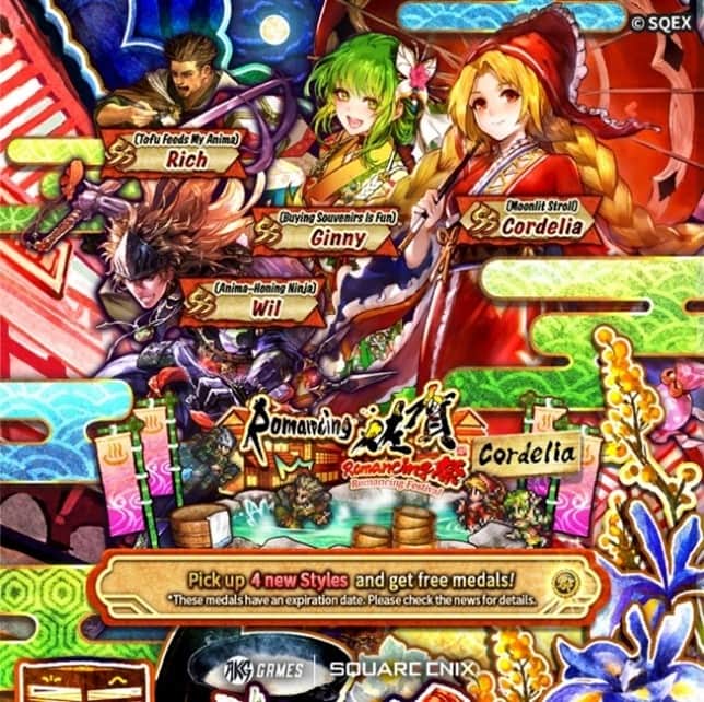 “ความพิเศษอีกอย่างหนึ่งในวันครบรอบปีที่สองของ SaGa RS คือการที่กาชาสองอันจะจัดขึ้นพร้อมกัน ผู้เล่นจะได้ร่วมสนุกทั้งในงาน Romancing Festival Emilia และ Romancing Festival Cordelia ที่จัดขึ้นตั้งแต่วันที่ 10 ถึง 30 มิถุนายนนี้ พร้อมรับชมการปรากฏตัวของ SS Style ใหม่ 8 แบบ ที่ทุกคนไม่ควรพลาด” Adrian กล่าวเสริม