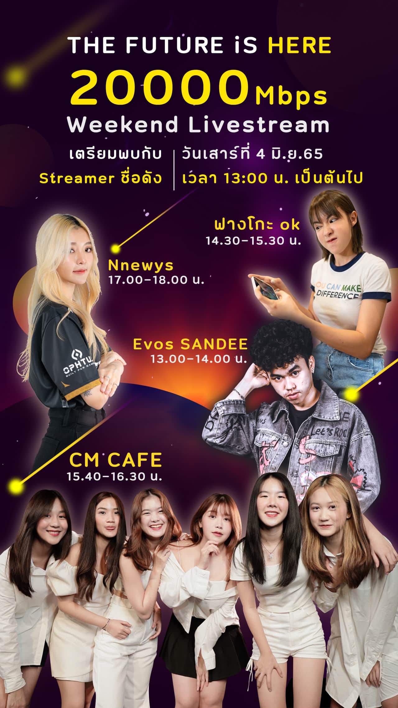 นอกจากนี้ SPACE by NT Experience Center ยังมีการจัดกิจกรรมพิเศษ ล่าสุดเมื่อวันที่ 4 มิถุนายนที่ผ่านมา มีอีเว้นท์พิเศษ “20000Mbps Weekend Livestream” ที่ยกขบวนสตรีมเมอร์ชื่อดังหลากหลายสาย ไม่ว่าจะเป็น Evos SANDEE, ฟางโกะ OK, CM Cafe และ Nnewys มา Live สดโชว์ประสิทธิภาพของอินเทอร์เน็ตบรอดแบรนด์สุดแรงของ NT