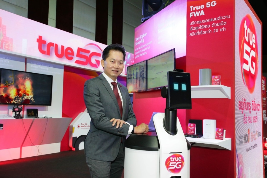 พลเอก ประยุทธ์ จันทร์โอชา นายกรัฐมนตรี และนายชัยวุฒิ ธนาคมานุสรณ์ รัฐมนตรีว่าการกระทรวงดิจิทัลเพื่อเศรษฐกิจและสังคม (ดีอีเอส) เยี่ยมชมนวัตกรรมโซลูชัน 5G ในบูธทรู นำเสนอศักยภาพระบบนิเวศทรู 5G นวัตกรรมและโซลูชัน รวมทั้ง Use Case ที่หลากหลายครอบคลุมทุกมิติของทุกอุตสาหกรรม เสริมแกร่งองค์กรธุรกิจไทย เพิ่มศักยภาพการแข่งขันให้ก้าวนำคู่แข่งไปอีกขั้น และเป็นพลังร่วมขับเคลื่อนเศรษฐกิจและสังคมไทยให้เติบโตได้อย่างยั่งยืน โดยมี นายณัฐวุฒิ อมรวิวัฒน์ (ที่ 3 จากซ้าย) กรรมการผู้จัดการใหญ่ (ร่วม) บมจ. ทรู คอร์ปอเรชั่น พร้อมคณะผู้บริหารให้การต้อนรับ ในงาน Thailand 5G Summit : The 5G Leader in the Region ณ โรงแรมเซ็นทารา แกรนด์ และ บางกอก คอนเวนชัน เซ็นเตอร์ เซ็นทรัลเวิลด์