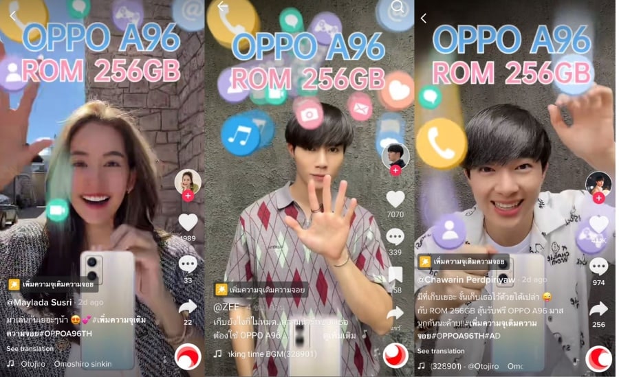 - ติดแฮชแท็ก #เพิ่มความจุเติมความจอย #OPPOA96TH