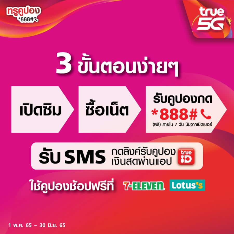 ลูกค้าทรู สามารถเปิดซิมใหม่ได้แล้ววันนี้ ที่ตัวแทนทรูใกล้บ้าน, ทรูช็อป, เซเว่น อีเลฟเว่น และโลตัสทุกสาขาทั่วประเทศ หรือสั่งซื้อซิมผ่านทรูออนไลน์สโตร์ https://store.truecorp.co.th/online-store/list/sim-card แล้วอย่าลืมกด *888# โทรออก เพื่อรับสิทธิ์ อยู่กับทรู ดียิ่งกว่า คุ้มยิ่งขึ้น รีบเลย ตั้งแต่วันนี้ ถึง 30 มิถุนายน 2565