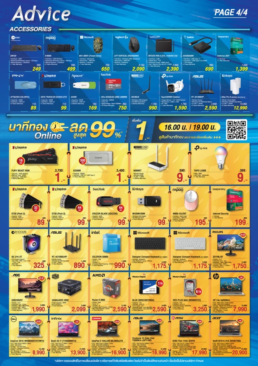 - นาทีทอง Online ลดสูงสุด 99% พบกับสินค้าไอทีในราคาสุดพิเศษผ่านช่องทางแฟนเพจ AdviceClub วันละ 2 รอบ เวลา 16:00 น. และ 19:00 น.