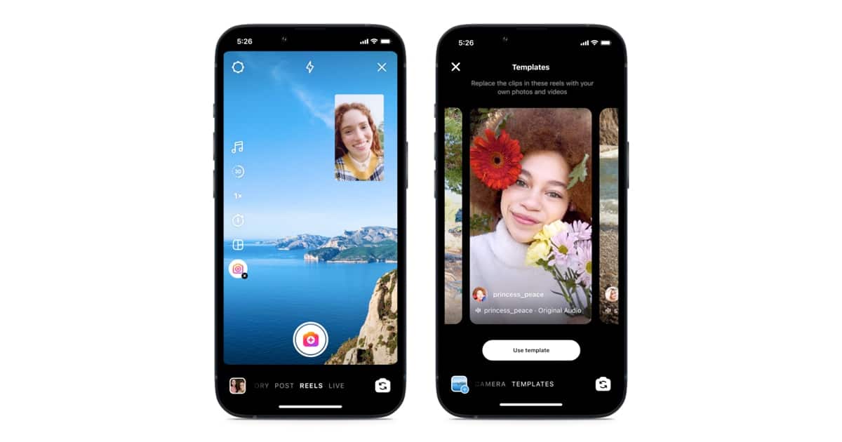 นอกจากนี้ Instragram ยังเพิ่มตัวเลือกเทมเพลต Reels เอาไว้ให้ผู้ใช้ได้ใช้รูปแบบ Reels ยอดนิยมกับคลิปวิดีโอของคุณเอง รวมถึงเพิ่มโหมดกล้องคู่ใหม่ (Dual camera mode เป็นการใช้งานกล้องหน้าและกล้องหลังพร้อมกัน) เพื่อให้ผู้ใช้จับภาพคอนเทนต์และปฏิกริยาของคุณได้ในเวลาเดียวกัน