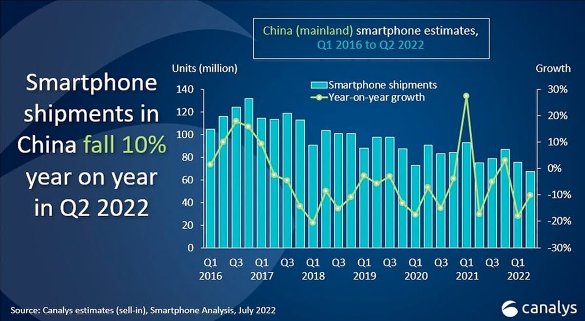 Toby Zhu นักวิเคราะห์ของบริษัท Canalys กล่าวว่า ผู้บริโภคในจีนกำลังระงับการใช้จ่ายไปกับสมาร์ทโฟน เนื่องจากการระบาดของ COVID-19 ไปทั่วประเทศ ทำให้รัฐบาลจีนสั่งล็อคดาวน์อย่างเข้มงวด โดยเฉพาะอย่างยิ่งในเมืองใหญ่ๆ อย่าง เซี่ยงไฮ้ เซินเจิ้น และปักกิ่ง เป็นต้น ประกอบกับภาวะเศรษฐกิจตกต่ำในประเทศ ทำให้ผู้คนต่างกังวลเรื่องรายได้สุทธิส่วนบุคคลที่ลดลงรวมถึงการว่างงานที่เพิ่มมากขึ้น