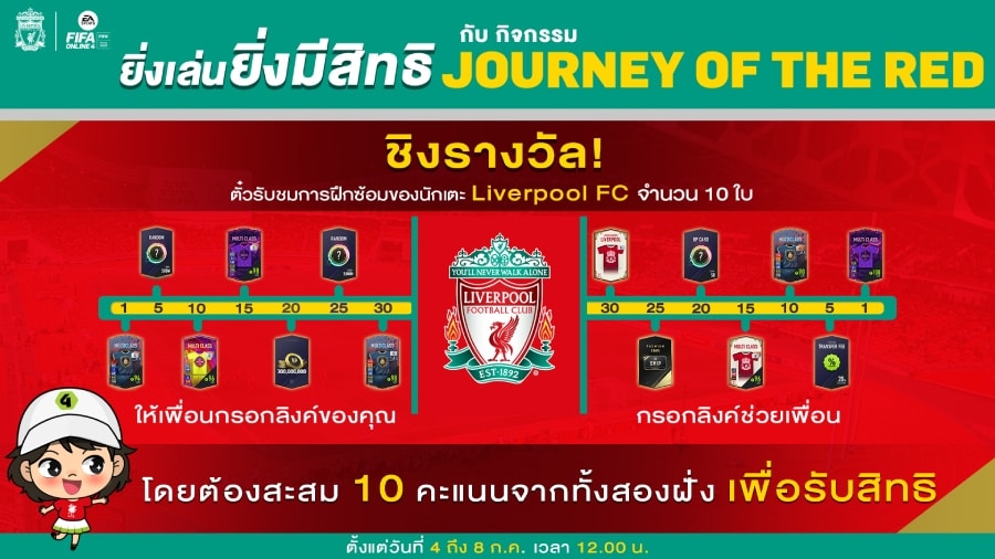 เรียกได้ว่ามีกิจกรรมหลากหลายรูปแบบมาตอบรับทุกคนกันเลย หวังว่าทุกคนจะสนุกกับแดงเดือดครั้งใหญ่ครั้งนี้กันนะ แล้วก็ชวนเพื่อนมาเล่นกิจกรรมพิเศษที่ FIFA Online 4 ร่วมกับสโมสร Liverpool FC ตั้งใจทำมาส่งมอบประสบการณ์สุด Exclusive ครั้งนี้กัน