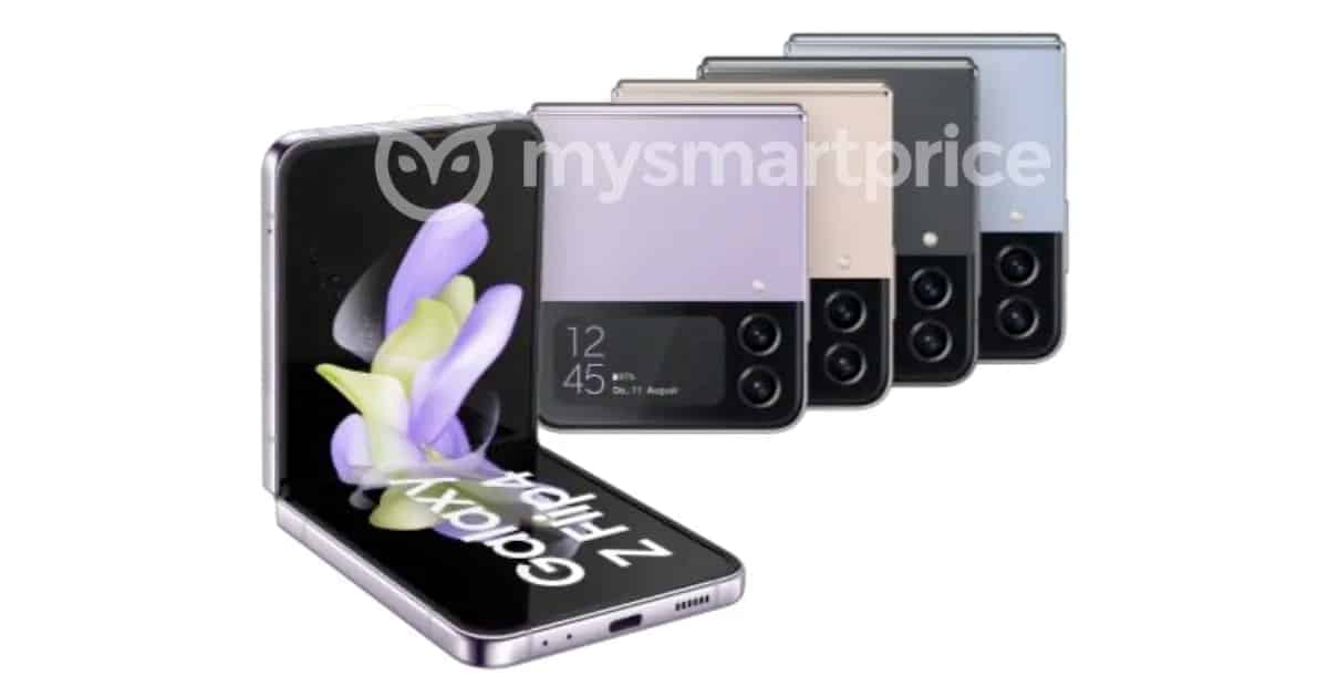 ล่าสุด เว็บไซต์ MySmartPrice ได้รับเผยภาพเรนเดอร์ของ Galaxy Z Flip 4 รุ่นใหม่ ที่มีให้เลือก 4 สี ได้แก่ สีฟ้า สีดำ สีครีม และสีลาเวนเดอร์ (สีเหล่านี้อาจมีชื่อสีทางการตลาดของ Samsung กำกับ คงต้องรอดูวัน เปิดตัว จริงๆ อีกครั้ง)