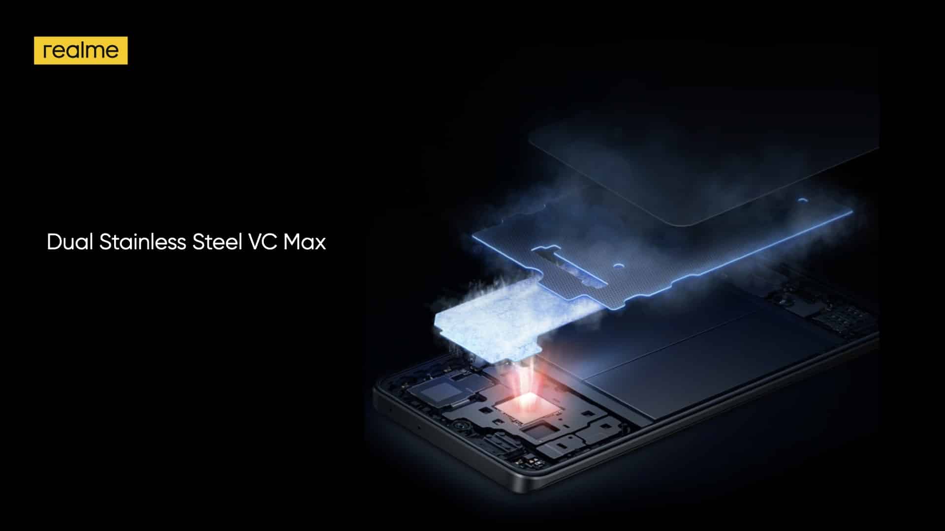 realme GT2 Explorer Master Edition ติดตั้งแผ่นระบายความร้อนสแตนเลส VC Max แบบคู่ เพื่อช่วยระบายความร้อนทั้งสองด้าน และด้วยพื้นที่ระบายความร้อนใหญ่ถึง 4,811 ตร.มม. จึงมีประสิทธิภาพการระบายความร้อนดีขึ้น 154% เมื่อเทียบกับรุ่นก่อนหน้านี้ในตระกูลมาสเตอร์ซีรีส์