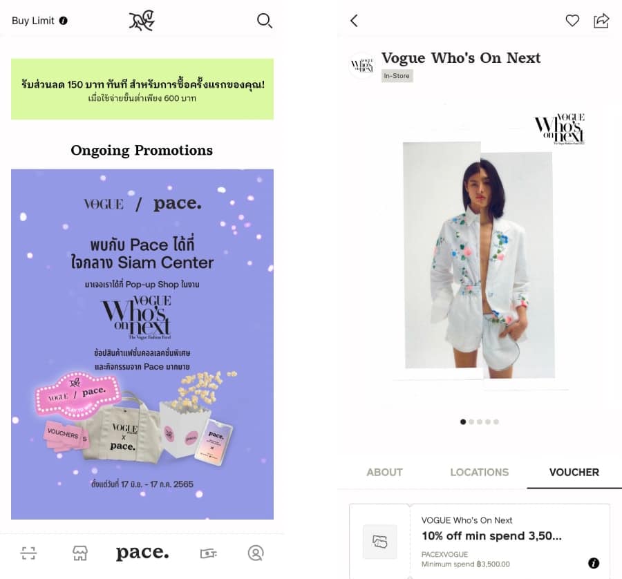ด้วยไลฟ์สไตล์การแต่งตัวของคนรุ่นใหม่ที่ต้องการสะท้อนถึงตัวตนที่หลากหลายอย่างสร้างสรรค์และมีสไตล์ พร้อมฉีกกรอบการแต่งตัวแบบเดิม ๆ และมองหาแรงบันดาลใจในการใช้ชีวิตใหม่ ๆ ที่มาพร้อมกับเทคโนโลยีและบริการที่รวดเร็วและสะดวกสบาย การคอลแลปส์ร่วมกันระหว่าง Pace และโว้ก ประเทศไทย ผ่านบริการชำระเงินแบบซื้อก่อน จ่ายทีหลัง ของ Pace ในงานครั้งนี้ ได้เข้ามาตอบโจทย์ไลฟ์สไตล์ของนักช้อปยุคใหม่ให้มีความสะดวกสบายมากขึ้น ด้วยการแบ่งจ่าย 3 เดือน ดอกเบี้ย 0% ผ่านแอปพลิเคชัน Pace Pay ให้เราสามารถดีไซน์รูปแบบการใช้จ่ายของเราเองได้ สามารถเลือกซื้อสินค้าแฟชั่นที่เราต้องการ และช้อปอย่างง่ายดาย รวมถึงเป็นไปได้ในงบประมาณที่เราตั้งไว้ อีกทั้งยังช่วยสนับสนุนธุรกิจร้านค้าแบรนด์ไทยอีกด้วย