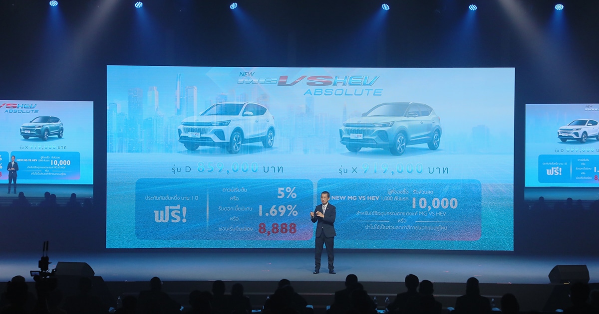 เปิดตัว MG VS HEV รถยนต์สปอร์ตไฮบริดเอสยูวีรุ่นแรก ขับสนุก เร้าใจ บุกตลาด B-SUV ด้วย ราคา เริ่มต้น 859,000 บาท พร้อม โปรโมชัน พิเศษลูกค้า 1,000 คันแรก รับส่วนลด 10,000 บาท*