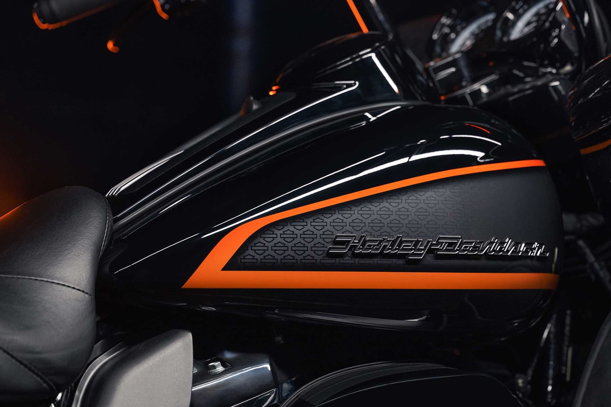 กราฟฟิกสีคัสตอม Apex ที่อยู่บนถังน้ำมัน มีรูปร่างคล้ายคลึงกับต้นแบบบนถังน้ำมันของ Harley-Davidson XR750 รถแข่งสำหรับสนามแข่งในตำนาน สำหรับรถมอเตอร์ไซค์รุ่นที่มีแฟริ่ง เส้นกราฟิกจะปัดข้างไปทางด้านหลังของตัวรถ ตามลายกราฟฟิกที่อยู่บนถังน้ำมัน และมีองศาของเส้นหักมุมสะท้อนถึงความเร็ว เส้นกราฟิก จะพาดเชื่อมต่อยาวตั้งแต่ด้านหน้าตัวรถ ตามบริเวณด้านข้าง ตลอดจนบนกระเป๋าข้างของตัวรถ สร้างรูปแบบเส้นที่กำลังพุ่งทะยาน แม้ในขณะที่รถมอเตอร์ไซค์จอดอยู่กับที่ กลับดูเคลื่อนไหวอย่างมีชีวิตชีวา