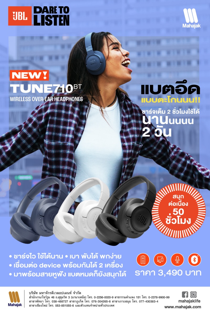 - JBL TUNE 710 BT ราคา 3,490 บาท