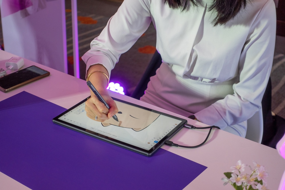 ในโหมดแท็บเล็ต ทำงานร่วมกับอุปกรณ์เสริม Lenovo Digital Pen หรือ Lenovo E-Color pen ที่สามารถจับสีได้จากวัตถุต่างๆ เพื่อใช้งานภายในเครื่อง