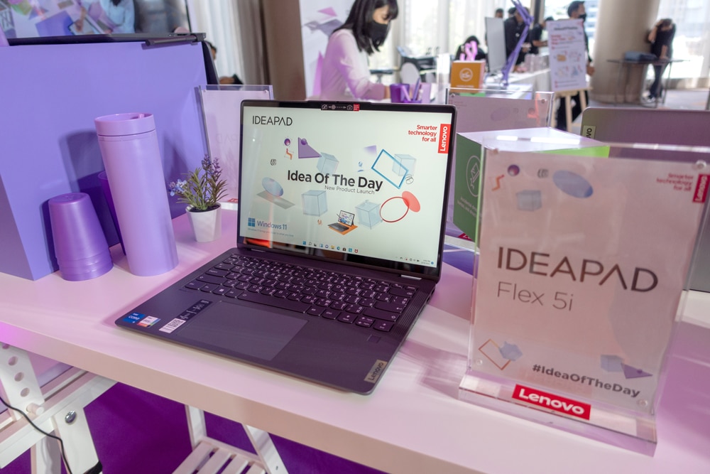 แล็ปท็อปแบบ 2-in-1 ออกแบบตามหลักสรีรศาสตร์ที่ดีขึ้น ใช้โปรเซสเซอร์ 12th Gen Intel-Core i7 U-Series พร้อมกราฟิก Intel Iris Xe Max graphic ในรุ่น IdeaPad Flex 5i และ AMD Ryzen 7 และ Radeon Graphic ในรุ่น IdeaPad Flex 5