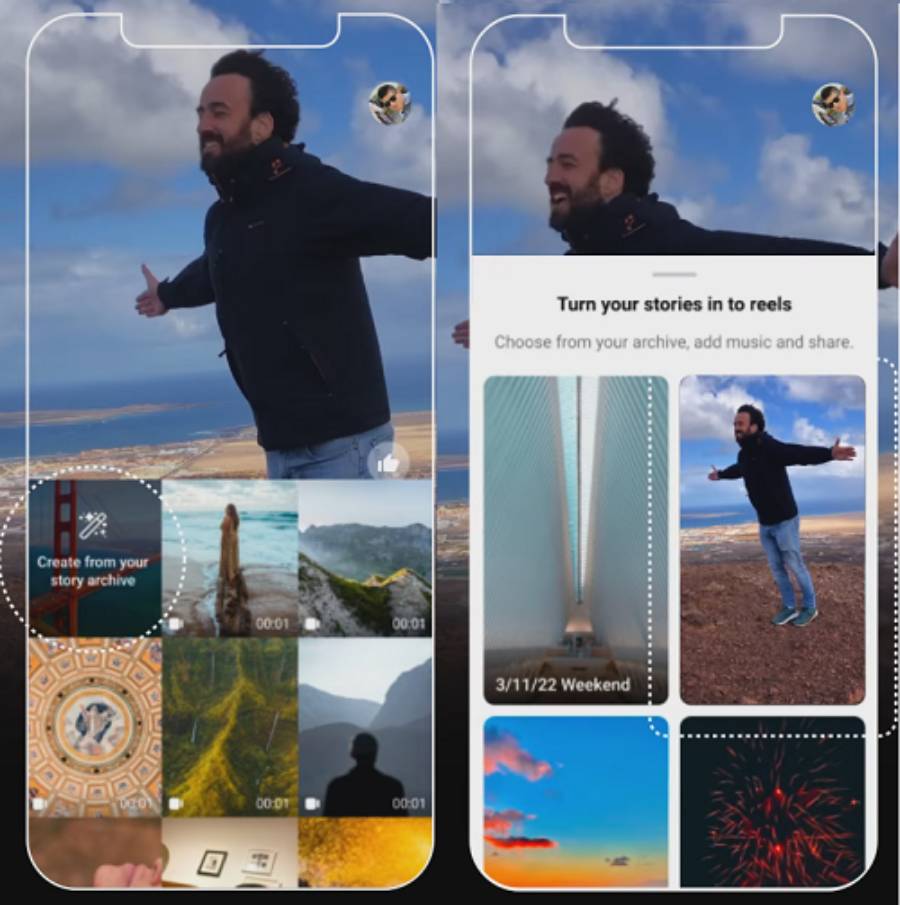 อีกหนึ่งการอัปเดตที่น่าสนใจในครั้งนี้ก็คือฟีเจอร์ Auto-created บน Facebook Reels ซึ่งจะช่วยให้ผู้ใช้สามารถแปลงคลิปจาก Stories ที่เก็บไว้ในคลังให้กลายเป็นคลิป Reels ได้โดยอัตโนมัติ ด้วยการกดไปที่ ‘Create from Your Story Archive’ จากในคลังสตอรี่ของคุณ