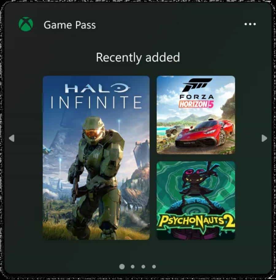วิดเจ็ต Game Pass บน Windows 11 นั้นจะช่วยให้ผู้ใช้ค้นหาเกมใหม่ ที่กำลังจะเข้าสู่บริการ Xbox Game Pass for PC ได้ง่ายขึ้น โดยจะมีหน้าต่างเมนูปรากฏขึ้นมาในหน้า Game Library ของบริการ เพื่อช่วยในการตรวจสอบเกมใหม่ล่าสุดและเกมที่กำลังจะถูกเพิ่มเข้ามาเร็วๆ นี้ได้