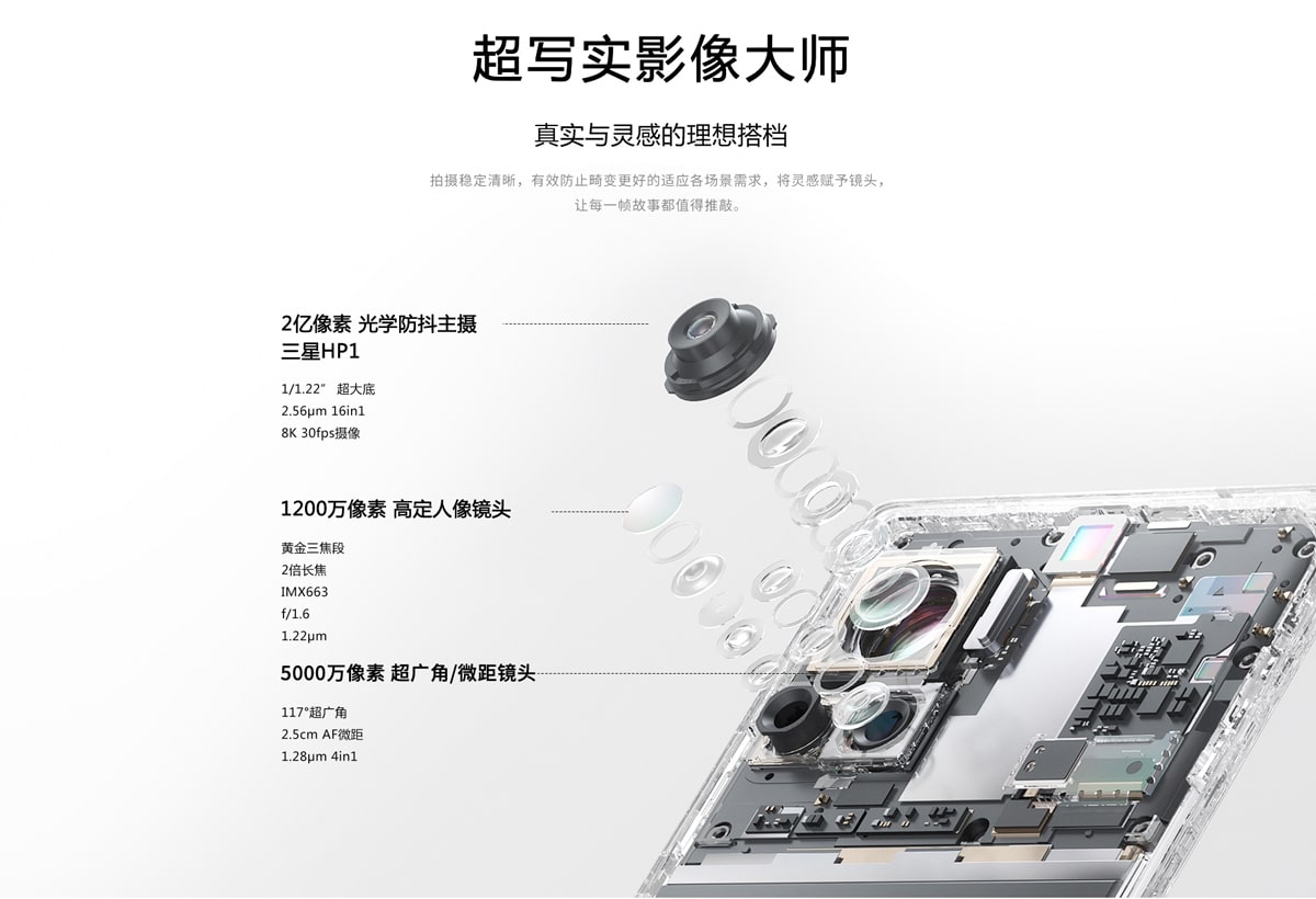 อย่างไรก็ตาม ไฮไลท์ที่น่าสนใจที่สุดของสมาร์ทโฟนรุ่นนี้ อยู่ที่กล้องหลัก 200 ล้านพิกเซล นอกจากนี้ยังมีเลนส์ ultrawide 50 ล้านพิกเซล เลนส์เทเลโฟโต้ 12 ล้านพิกเซล และกล้องหน้า 60 ล้านพิกเซล