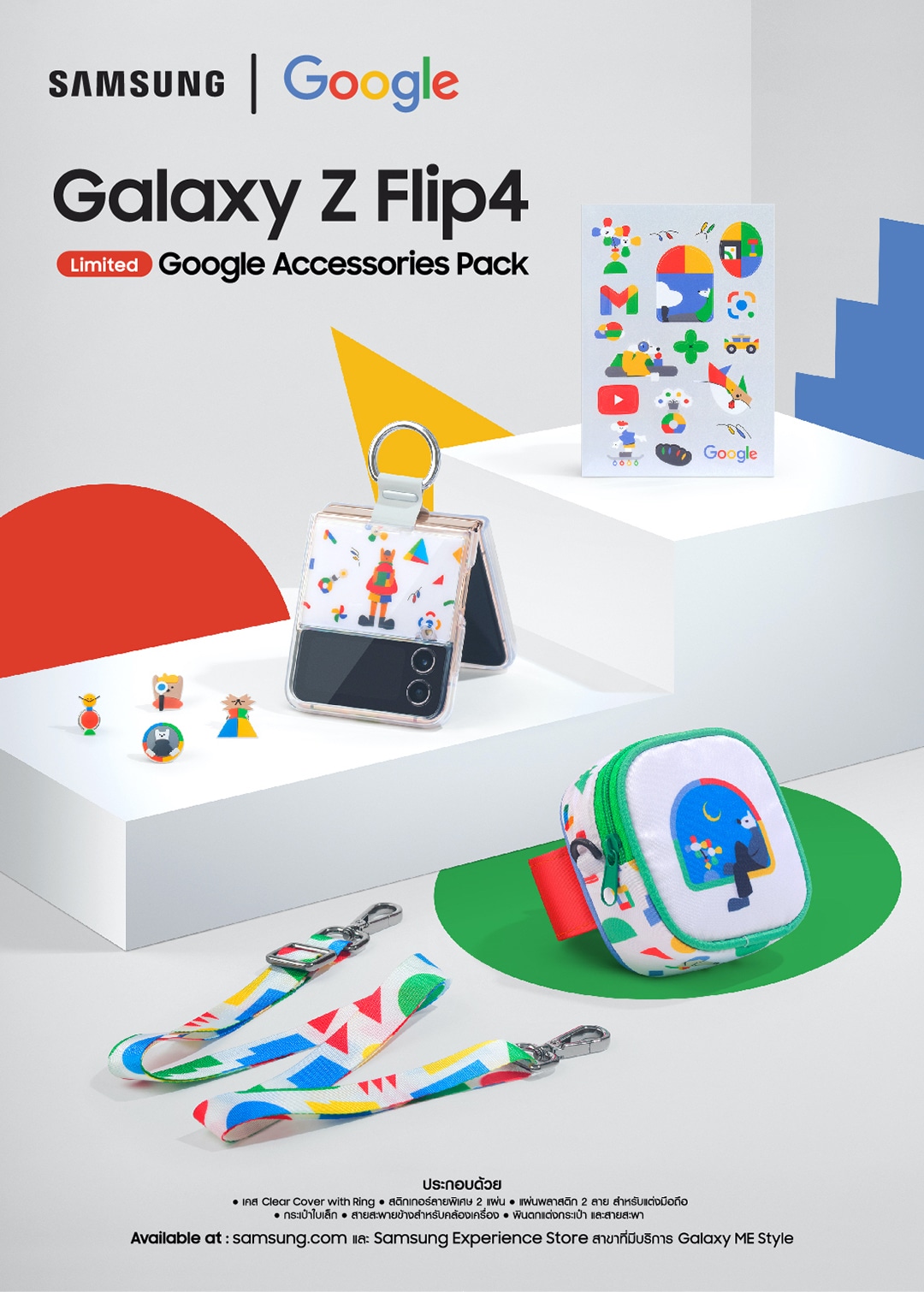 นอกจากนี้เพื่อเป็นการต้อนรับการเปิดตัวของ Galaxy Z Flip4 และ Z Fold4 ใหม่ ทางกูเกิ้ล จึงได้มีการทำ Limited Google Accessories Pack สำหรับ Galaxy Z Flip4 ซึ่งภายในกล่องจะประกอบด้วย Accessories จำเป็นสำหรับการใช้งาน ประกอบกับดีไซน์ที่สวยงาม แปลกใหม่ สะดุดตา ทำให้ไม่ว่าใครที่เห็นก็อยากจับจองเป็นเจ้าของ โดยจะวางจำหน่ายในวันที่ 2 กันยายน 2565 ที่ samsung.com และ Samsung Experience Store สาขาที่มี Galaxy ME Style จำกัดเพียง 1,000 ชุดเท่านั้น