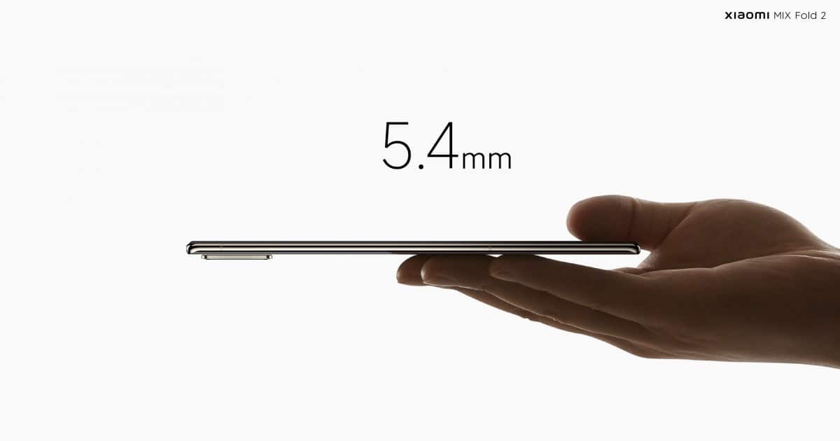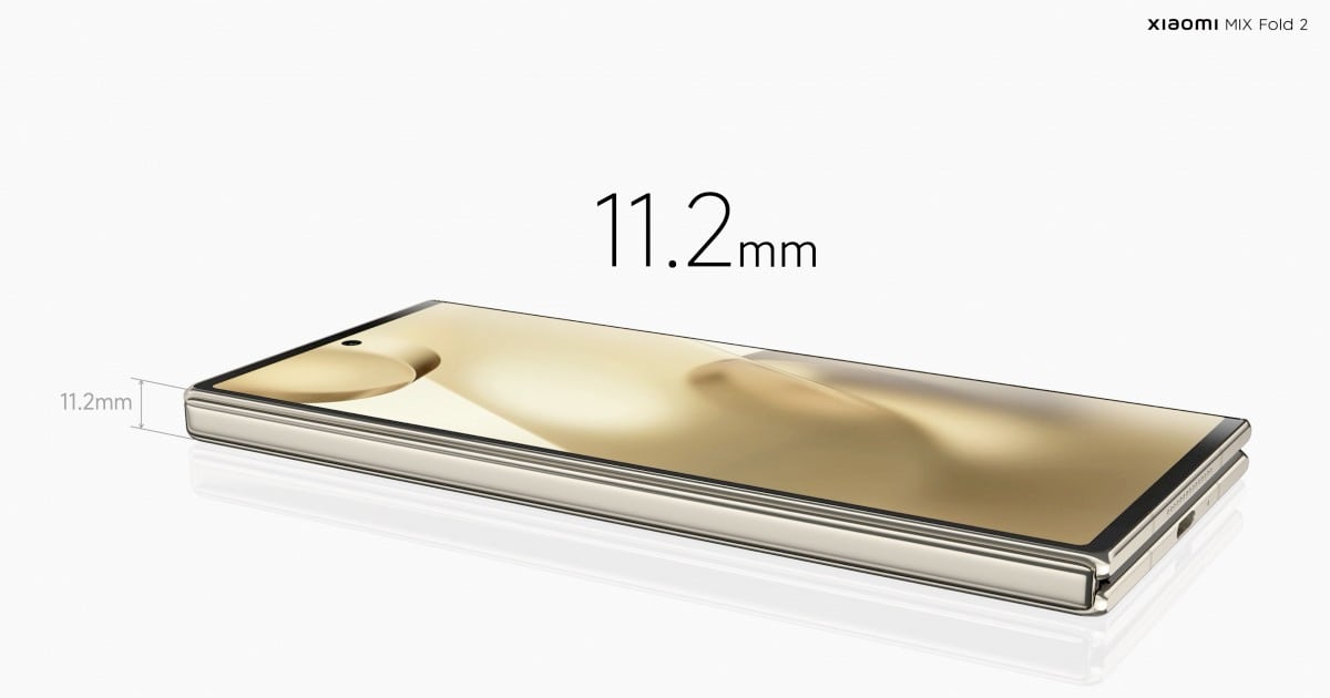 ต่อมา ตัวเครื่องมีความหนา 5.4 มิลลิเมตรเมื่อกางออก และจะมีความหนา 11.2 นิ้วเมื่อพับ มาพร้อมน้ำหนักประมาณ 262 กรัม ทางเสียวหมี่ภูมิใจนำเสนอว่า นี่คือสมาร์ทโฟนจอพับได้ ที่มีความบางที่สุดในท้องตลาดตอนนี้
