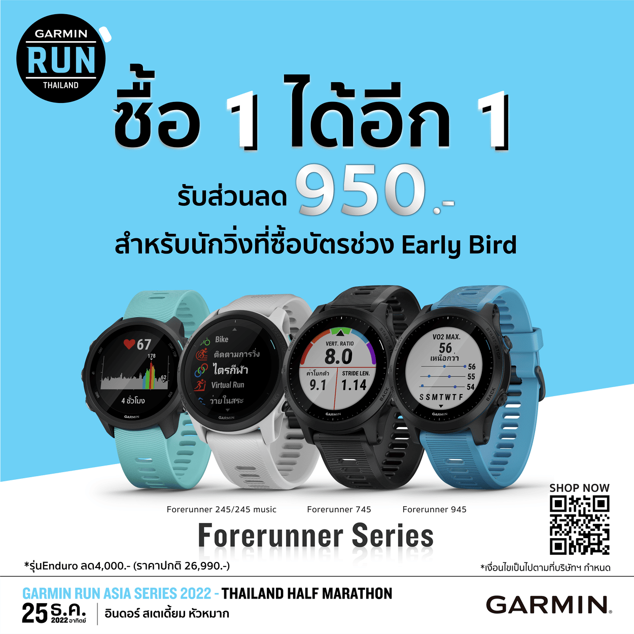 สำหรับผู้ที่สนใจสามารถลงทะเบียนเข้าร่วมงานได้แล้วตั้งแต่วันนี้ – 30 พฤศจิกายน 2565 ผ่านช่องทาง https://bit.ly/3xqvEgI พิเศษสุดสำหรับผู้ที่ลงทะเบียนตั้งแต่วันนี้ – 9 ตุลาคม จะได้รับสิทธิ์ Early Birds ในโปร “ซื้อ 1 ได้อีก 1” รับส่วนลดค่าบัตรมูลค่า 100 บาท พร้อมรับส่วนลดสูงสุดถึง 950 บาทในการซื้อสมาร์ทวอทช์ Garmin หลากหลายรุ่น อาทิ Forerunner รุ่น 245 รุ่น 745 และรุ่น 945 ติดตามข้อมูลเพิ่มเติมได้ที่ เฟซบุ๊กเพจ Garmin Thailand