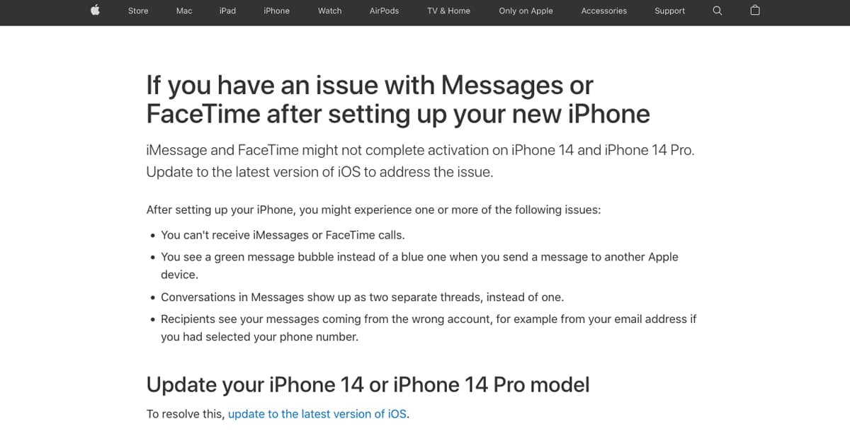 ในเอกสารซัพพอร์ตของ Apple ยังแจ้งลูกค้า iPhone 14 และ iPhone 14 Pro อีกว่า iMessage และ FaceTime อาจไม่สามารถเปิดใช้งานได้อย่างสมบูรณ์จนกว่าจะมีการอัปเดตอุปกรณณ์ใหม่เป็น iOS 16.0.1