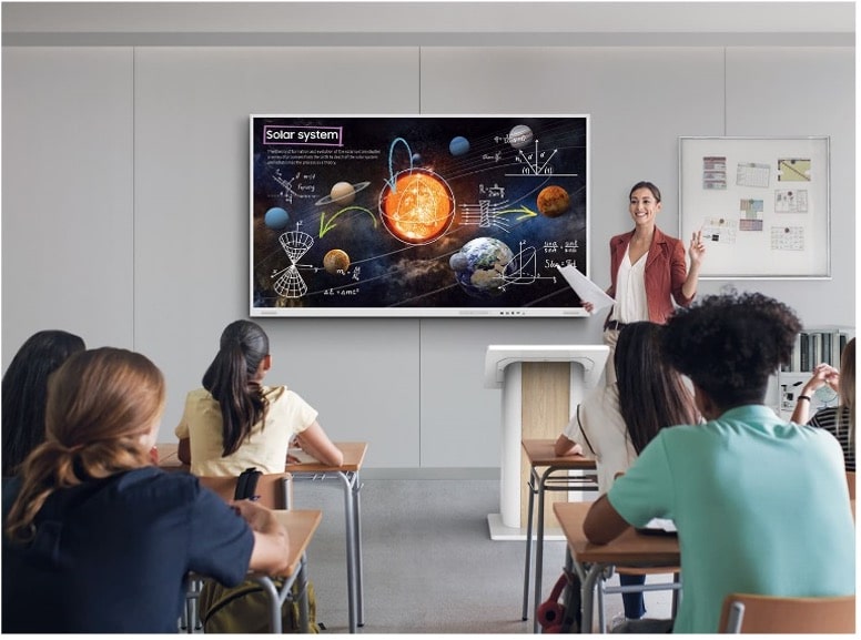Samsung Flip Pro รุ่นปี 2022 ใหม่ล่าสุดจากซัมซุง มาพร้อมกับขนาด 55, 65, 75 นิ้ว และ 85 นิ้ว ถือเป็นสุดยอดจอภาพที่เหมาะเป็นอย่างยิ่งสำหรับนักเรียนและพนักงานในการใช้ทำงานร่วมกันอย่างมีคุณภาพ ด้วยประสบการณ์การเขียนและวาดภาพในโลกความเป็นจริงด้วยโหมดปากกาและพู่กัน ที่ไม่ต้องใช้อุปกรณ์เสริมมาเชื่อมต่อ สามารถใช้แท่งไม้ หรือพู่กันจริงๆ มาเขียนได้เลย รวมถึงยังใข้มือในการลบสิ่งที่เขียน ได้ความรู้สึกเหมือนเขียนบนกระดานจริงๆ
