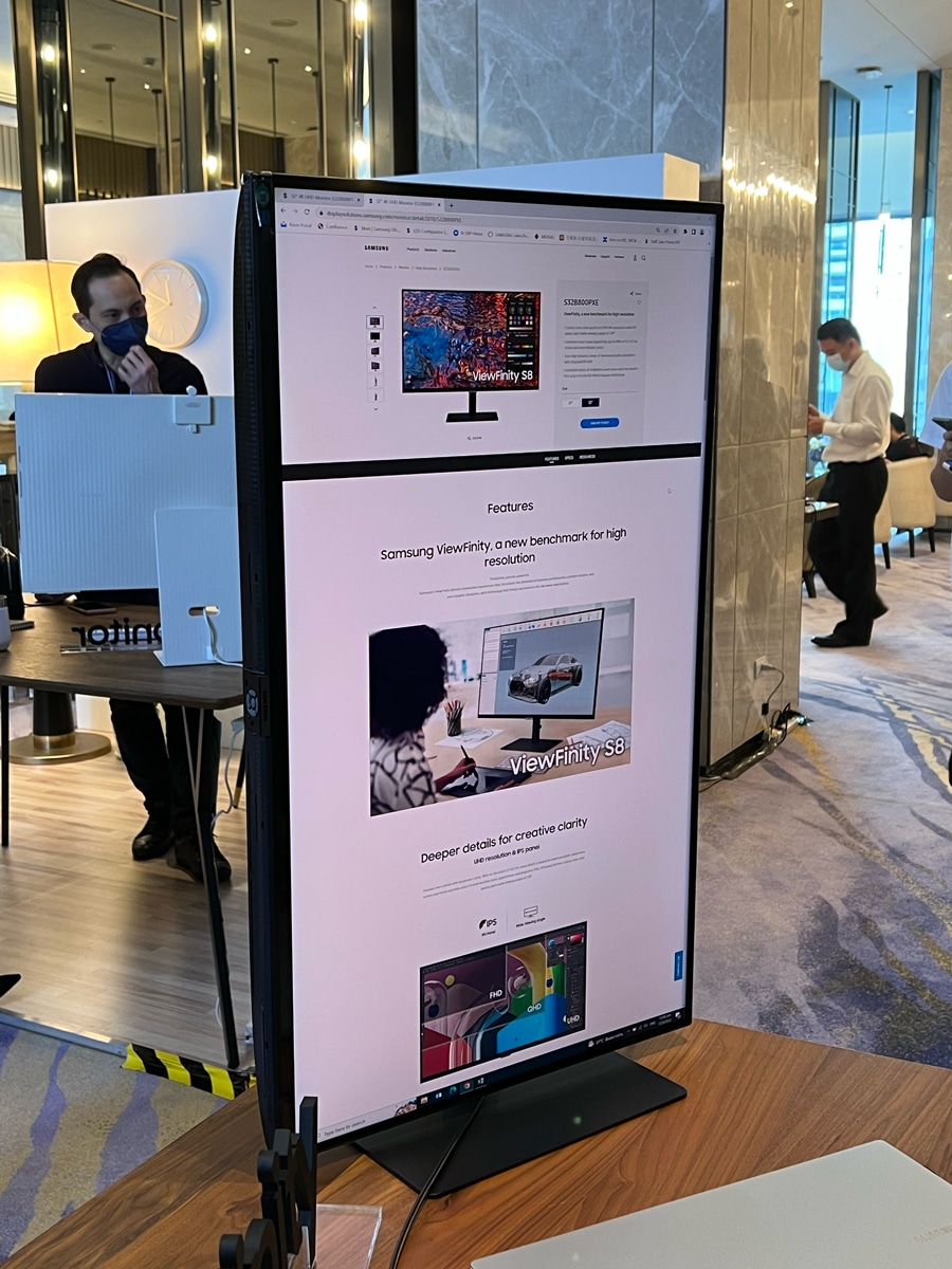 จอมอนิเตอร์ความละเอียดสูงรุ่น ViewFinity S8 ที่เหมาะสำหรับคอนเทนต์ครีเอเตอร์ เปิดตัวในขนาดยอดนิยม 2 ขนาดคือ 27 นิ้ว และ 32 นิ้ว มอนิเตอร์รุ่นนี้เอื้อต่อการสร้างสรรค์คอนเทนต์ในรูปแบบต่างๆ ไม่ว่าจะเป็นการออกแบบกราฟิกและการทำแผนภูมิด้านการเงินที่เต็มไปด้วยรายละเอียดยิบย่อยทั้งในออฟฟิศและการทำงานที่บ้าน จอความละเอียดระดับ pro-grade UHD มีช่วงสีกว้างถึง 98% ตามมาตรฐาน DCI-P3 และ VESA DisplayHDR เพื่อช่วงสีที่ถูกต้องแม่นยำและแสดงความแตกต่างของสีได้อย่างเหมาะสมที่สุด นอกจากนี้ ViewFinity S8 ยังผ่านการรับรอง PANTONE Validated ซึ่งเป็นการยอมรับในความสามารถของการแสดงผลสีได้อย่างแม่นยำมากถึง 2 พันสีและมีเฉดสีแพนโทนที่เพิ่มขึ้นมาใหม่มากถึง 110 เฉด