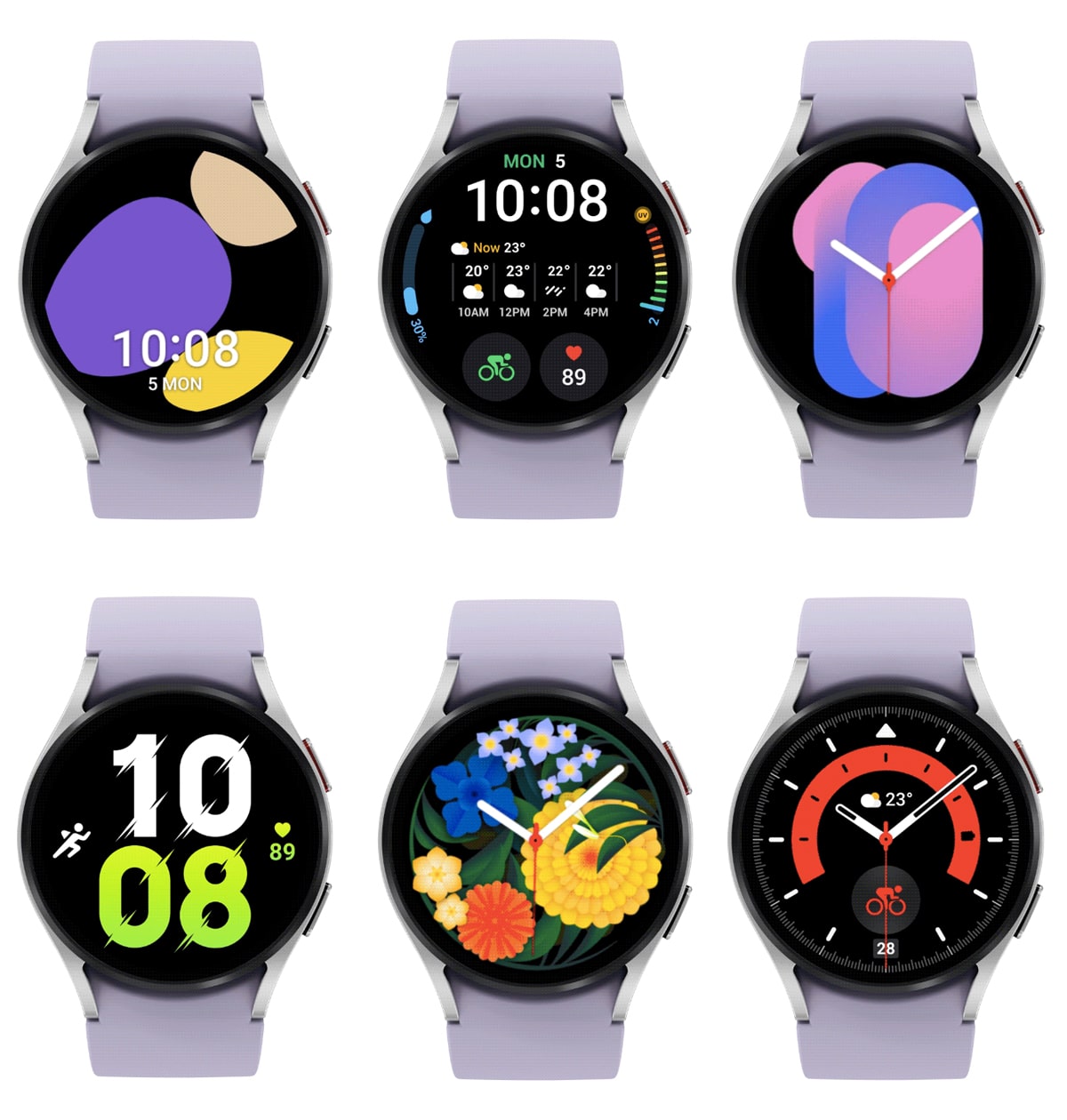One UI Watch4.5 มาพร้อมหน้าปัดนาฬิกาแบบโต้ตอบที่มาพร้อมสีสันต่างๆ ให้เลือกถึง 6 แบบ และพาเลทสีใหม่ๆ ไปยัง Galaxy Watch4 ทำให้เลย์เอาต์ที่ต่างกันมีความหลากหลายมากขึ้น ให้ผู้ใช้ได้เลือกเปลี่ยนและจับคู่เข้ากับสไตล์ของตัวเอง