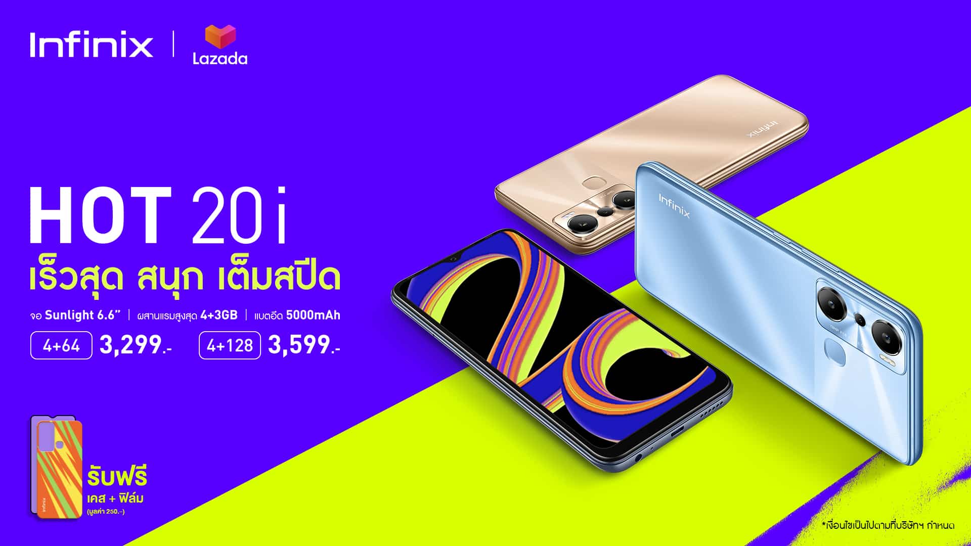 แฟนๆ อินฟินิกซ์สามารถเป็นเจ้าของ Infinix HOT 20 Series ได้ในราคาสุดคุ้มพร้อมของแถมสุดลิมิเต็ดมากมาย จำหน่ายวันแรกวันที่ 7 ตุลาคม 2565 โดยจะมี ราคา พิเศษในช่วงเปิดตัวระหว่างวันที่ 7 – 16 ตุลาคม 2565 สำหรับ HOT 20S รุ่น 8+128GB ราคา 5,190 บาท, HOT 20 รุ่น 4+128GB ราคา 4,190 บาท และ HOT 20 รุ่น 6+128GB ราคา 4,690 บาท สั่งซื้อได้ผ่านทางออนไลน์บน Shopee Link: https://bit.ly/3SSwvyW และ HOT 20i รุ่น 4+64GB ราคา 3,299 บาท และ 4+128 GB ราคา 3,599 บาท สั่งซื้อได้ผ่านทาง Lazada Link: https://bit.ly/3SWj9BN ผู้สนใจค้นหารายละเอียดเพิ่มเติมได้ที่ https://www.infinixmobility.com/th