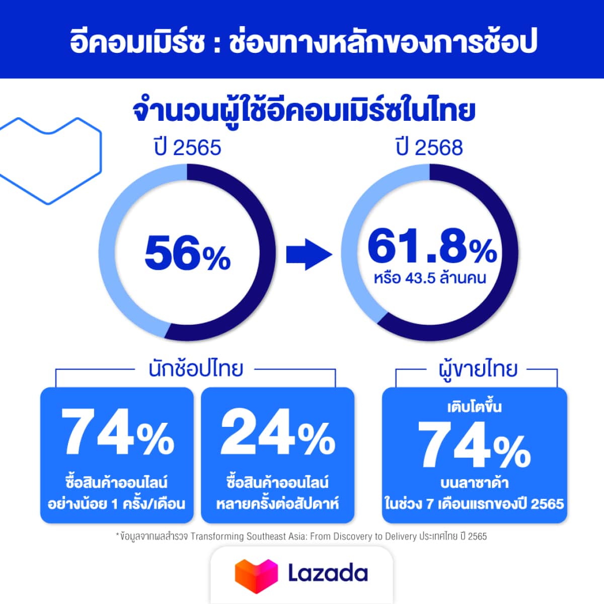 จากพฤติกรรมดังกล่าว ดร. วีระพงศ์ โก ประธานเจ้าหน้าที่บริหาร ลาซาด้า ประเทศไทย ได้กล่าวถึงโอกาสในการเข้าถึงกลุ่มเป้าหมายผ่านอีคอมเมิร์ซที่ยังมีช่องว่างในการเติบโตได้อีกมาก “จากสถิติ คนไทยเข้าถึงอีคอมเมิร์ซมากถึง 56% ในปี 2565 และคาดว่าจะเพิ่มเป็น 61.8% ในปี 2568 ทำให้แบรนด์และผู้ประกอบการจำนวนมากได้ปรับตัวและเข้ามาสร้างธุรกิจในช่องทางนี้ เห็นได้จากในช่วง 7 เดือนแรกของปีนี้ที่มีจำนวนร้านค้าและผู้ขายบนลาซาด้าเติบโตเพิ่มขึ้นถึง 41% สะท้อนถึงความเชื่อมั่นที่ผู้ขายมีต่อลาซาด้าในฐานะแพลตฟอร์มอีคอมเมิร์ซที่มีการพัฒนารอบด้านอย่างไม่หยุดยั้ง เพื่อมอบประสบการณ์ช้อปปิงที่แตกต่างและราบรื่นที่สุดให้แบรนด์ ผู้ขาย และนักช้อป”
