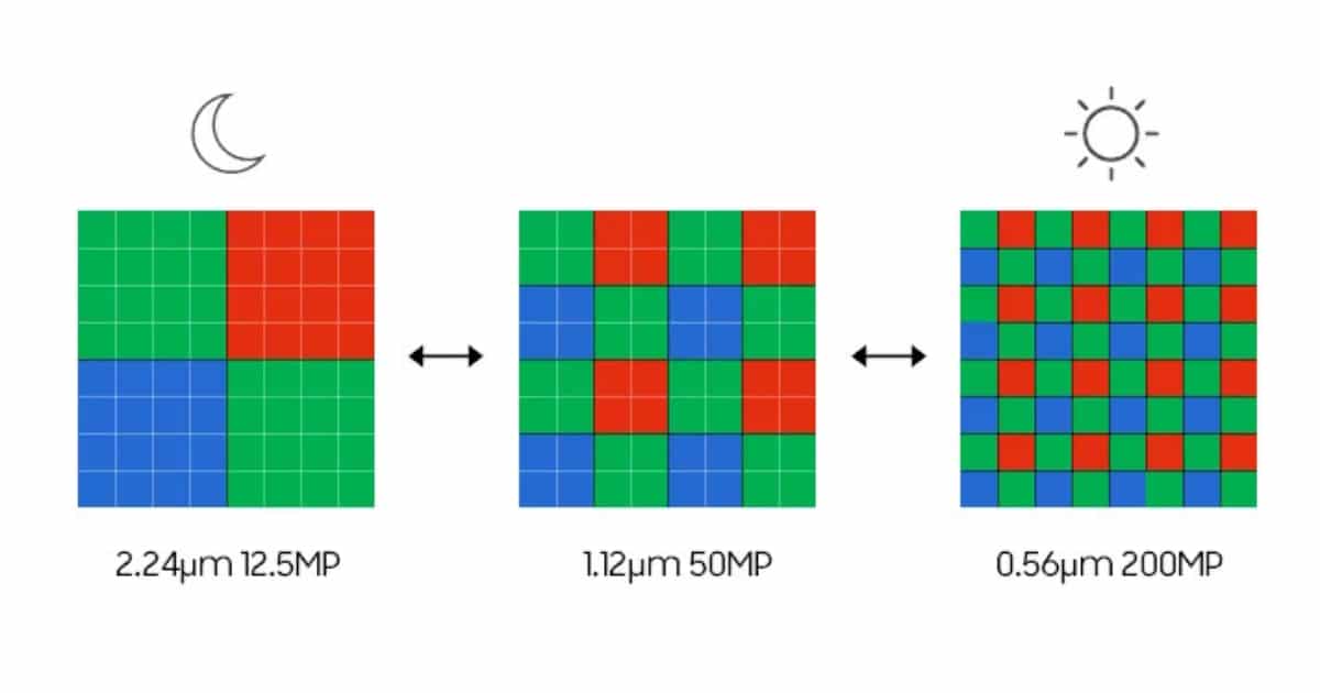 Samsung ยังกล่าวอีกว่าขนาดพิกเซลยังคงอยู่ที่ 0.56 ไมครอนในสภาวะแสงเพียงพอ ให้ความละเอียดภาพที่ 200 ล้านพิกเซล ในทางกลับกัน พิกเซลจะเปลี่ยนแปลงเป็น 1.12 ไมครอนในสภาวะแสงน้อย ให้ผลลัพท์ที่ 50 ล้านพิกเซล และสุดท้ายในสภาวะแสงน้อย เจ้า 16 พิกเซลจะถูกรวมเข้าด้วยกัน ทำให้เซ็นเซอร์มี 2.24 ไมครอน ให้ผลลัพท์ที่ 12.5 ล้านพิกเซล