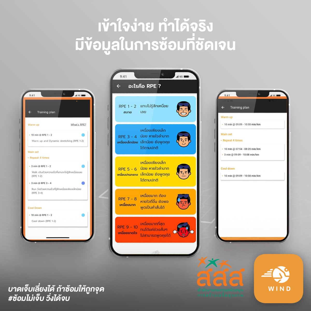 ดร.นพ.ไพโรจน์ เสาน่วม ผู้ช่วยผู้จัดการ สำนักงานกองทุนสนับสนุนการสร้างเสริมสุขภาพ (สสส.) และรักษาการผู้อำนวยการ สำนักสร้างเสริมวิถีชีวิตสุขภาวะ เปิดเผยว่า สสส.นำเทคโนโลยีและนวัตกรรมทันสมัยเข้ามาส่งเสริมประสิทธิภาพและกระตุ้นให้คนไทยมีกิจกรรมทางกายเพิ่มมากขึ้น เพื่อเป็นเกราะป้องกันการเกิดโรคไม่ติดต่อ หรือ NCDs สาเหตุสำคัญต่อการเสียชีวิตก่อนวัยอันควรถึง 75% ของประชากรไทย โดยล่าสุดร่วมกับโครงการ WIND Training พัฒนาโปรแกรมการออกแบบตารางกิจกรรมทางกายที่เหมาะสมเฉพาะบุคคลในแอปพลิเคชัน WIND Training ได้สำเร็จและเป็นครั้งแรกของไทยที่ใช้เทคโนโลยีปัญญาประดิษฐ์ หรือ Artificial Intelligence (AI) ผสานองค์ความรู้ทั้งทฤษฎีและแนวปฏิบัติการมีกิจกรรมทางกายเข้าไว้ด้วยกัน มีหลักการใช้งานที่ง่ายสามารถปฏิบัติตามได้ มีความสนุกสนาน เห็นผลในเชิงสุขภาพได้จริง รวมทั้งยังช่วยลดพฤติกรรมเนือยนิ่ง และมีความปลอดภัยไร้อาการบาดเจ็บหลังปฏิบัติ จึงเหมาะสำหรับกลุ่มคนทุกเพศวัย ซึ่งผู้ที่ใช้แอปพลิเคชันฯ นี้ก็เสมือนกับมีผู้ฝึกสอนการมีกิจกรรมทางกายส่วนตัวโดยไม่มีค่าใช้จ่าย และเมื่อสามารถปฏิบัติตามตารางกิจกรรมทางกายได้อย่างสม่ำเสมอก็เท่ากับมีกิจกรรรมทางกายที่เพียงพอตามคำแนะนำขององค์การอนามัยโลก (WHO) ที่ระดับ 150 นาทีต่อสัปดาห์ และเห็นความเปลี่ยนแปลงของร่างกายที่ดีขึ้น นำไปสู่การพัฒนาความสามารถในการทำกิจกรรมทางกายที่หนักขึ้น และเข้าสู่ชีวิตสุขภาวะเป็นภูมิคุ้มกันการเกิดโรคไม่ติดต่อ