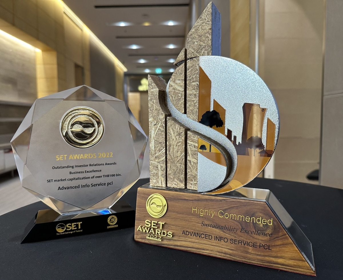 AIS คว้า 2 รางวัลใหญ่จากเวที SET AWARDS 2022 ที่จัดโดยตลาดหลักทรัพย์แห่งประเทศไทยร่วมกับวารสารการเงินธนาคาร เพื่อเป็นการประกาศเกียรติคุณบริษัทจดทะเบียน บริษัทหลักทรัพย์ บริษัทหลักทรัพย์จัดการกองทุน และบริษัทที่ปรึกษาทางการเงิน ที่มีความยอดเยี่ยมและดีเด่นในด้านต่าง ๆ จากผลการดำเนินงานในปีที่ผ่านมา สำหรับปีนี้ AIS ยังคงทำผลงานได้อย่างโดดเด่น กวาดมาได้ถึง 2 รางวัลใหญ่ ได้แก่ รางวัล Business Excellence สาขา Outstanding Investor Relations Awards ซึ่งเป็นการได้รับรางวัลต่อเนื่องเป็นปีที่ 3 และรางวัล Highly Commended Sustainability Awards ซึ่งได้รับการจัดอันดับในระดับที่สูงขึ้นจากปีที่ผ่านมาในกลุ่มรางวัล Sustainable Excellence ที่สะท้อนให้เห็นถึงความมุ่งมั่นในการดำเนินธุรกิจอย่างโปร่งใส ตามหลักบรรษัทภิบาลเพื่อสร้างการเติบโตร่วมกันอย่างยั่งยืนของเศรษฐกิจ สังคม และสิ่งแวดล้อม พร้อมทั้งคำนึงถึงผู้มีส่วนได้ส่วนเสียทุกกลุ่มอย่างรอบด้าน