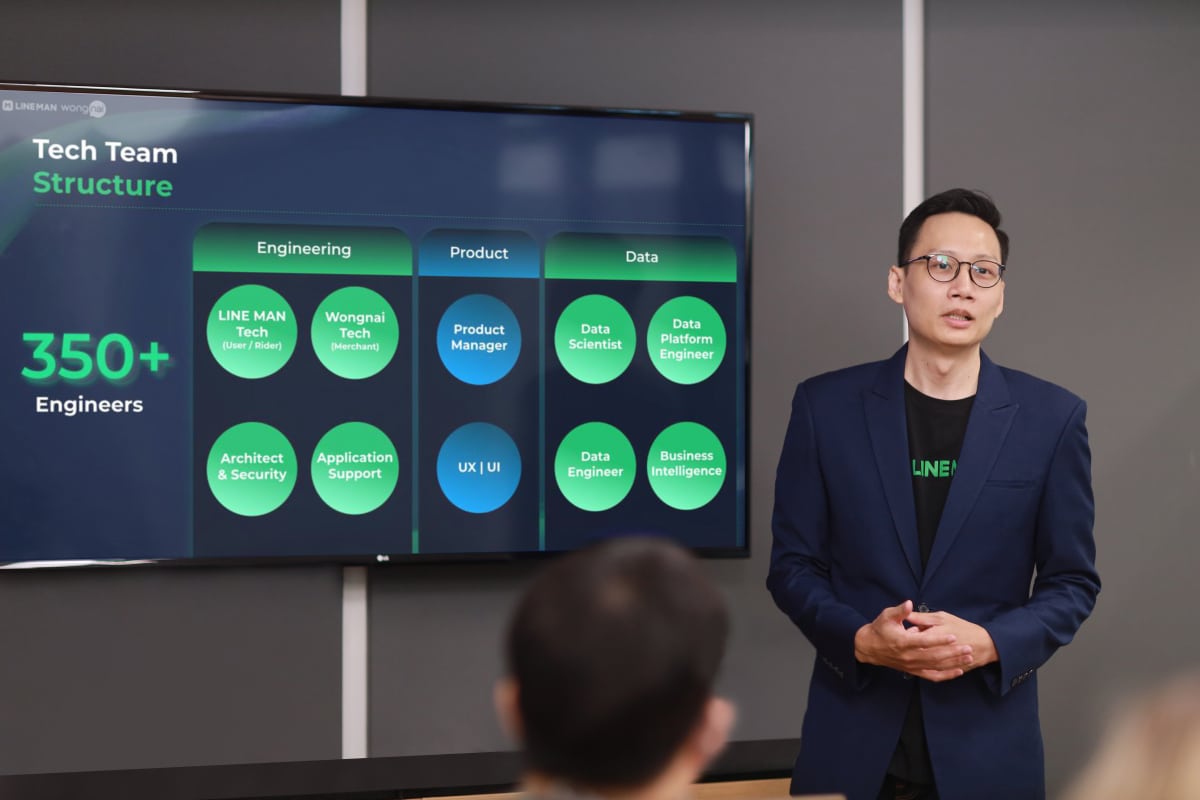 LINE MAN Wongnai คือแพลตฟอร์มที่มีผู้ใช้งานคนไทย 10 ล้านคนใช้งานทุกวัน และมีความถี่ในการใช้งานวันละหลายครั้ง ภายในอีโคซิสเต็มของ LINE MAN Wongnai ประกอบไปด้วย 3 ส่วน ได้แก่ ผู้ใช้งาน, ร้านค้า และไรเดอร์ จำเป็นต้องใช้ทีมเทคโนโลยีมากกว่า 350 คน พัฒนาและออกแบบผลิตภัณฑ์ที่แต่ละส่วนมีรูปแบบการใช้งานแตกต่างกันมาก แต่มีเป้าหมายเดียวกันคือต้องให้คนไทยทุกคนใช้งานได้ง่าย โครงสร้างทีมเทคโนโลยีแบ่งเป็น 3 ทีมใหญ่ ๆ ได้แก่ ทีม Engineering, ทีม Product และทีม Data ทำงานสอดประสานกันเพื่อสร้างประสบการณ์การใช้งานที่ง่ายและทำให้ชีวิตคนไทยดีขึ้นทั้ง
