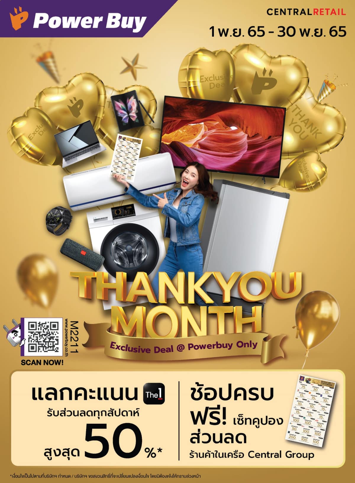 พาเวอร์บาย ในเครือ เซ็นทรัล รีเทล มอบความสุขให้นักช้อปส่งท้ายปีเสือ ด้วย แคมเปญใหญ่ จัดหนัก ‘Power Buy Thank You Month’ ช้อปกระจายแบบไร้ขีดจำกัดตลอดเดือนพฤศจิกายนนี้ ตอบโจทย์นักช้อปที่กำลังเลือกหาของขวัญช่วงเทศกาลแห่งความสุข พร้อมกระตุ้นการจับจ่ายในช่วง 2 เดือนสุดท้ายของปีให้คึกคัก