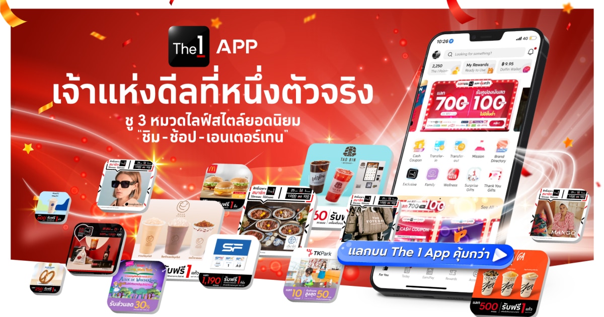 The 1 (เดอะ วัน) ผู้นำด้านดิจิทัลไลฟ์สไตล์และลอยัลตี้ ในฐานะ Center of Life Platform อันดับ 1 ของไทย ภายใต้กลุ่มเซ็นทรัล อันดับหนึ่งตัวจริงเรื่องดีล ชู 3 หมวดไลฟ์สไตล์ยอดนิยม “ชิม-ช้อป-เอนเตอร์เทน” ครอบคลุมความต้องการสมาชิก The 1 ทุกคน! พร้อมหลากหลายดีลครบทุกหมวด ครอบคลุมทุกไลฟ์สไตล์ เลือกแลกได้กว่า 10,000 ดีล สุดคุ้มตลอดทั้งปี แบบไม่จำกัด! เน้นย้ำให้สมาชิกมา “แลกบน The 1 APP คุ้มกว่า” ได้ทุกวัน เริ่มต้นเพียง 1 คะแนน