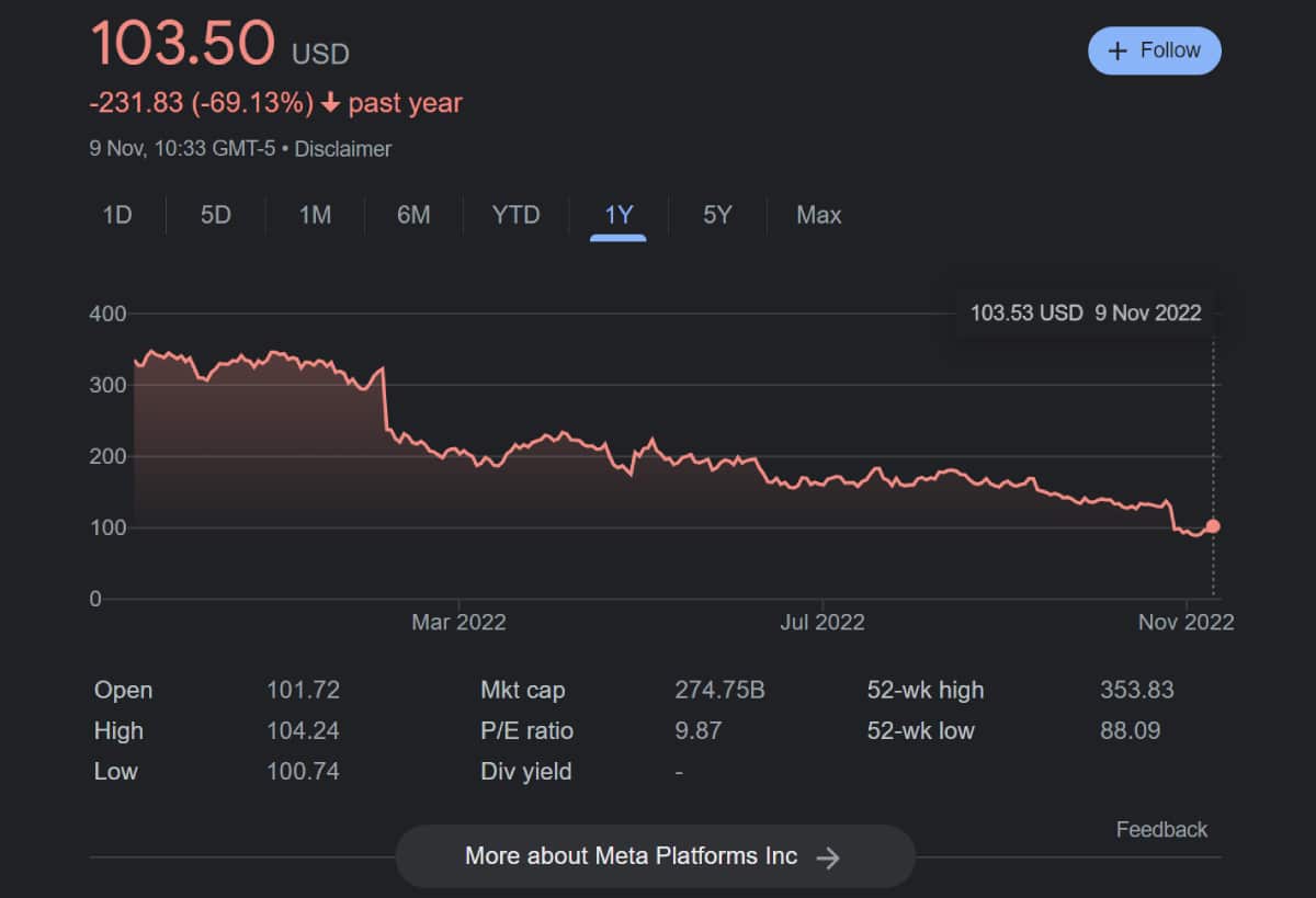 Meta ดำเนินมาถึงจุดที่ต้องเลิกจ้างพนักงานกว่า 11,000 คนได้นั้น เริ่มจากมูลค่าของบริษัทลดลงประมาณ 5 แสนล้านดอลลาร์ในช่วงเวลา 12 เดือนที่ผ่านมา อีกทั้งผลประกอบการอย่าง รายรับสุทธิของไตรมาสที่ 3 ร่วงลงถึง 52% ลงมาเหลือเพียง 4.4 พันล้านดอลลาร์ (ต่ำกว่าที่นักวิเคราะห์คาดการณ์ไว้ที่ 5 พันล้านดอลลาร์) และรายรับที่ลดลงอีก 4% เหลือเพียง 2.771 หมื่นล้านดอลลาร์ ส่งผลให้นักลงทุนรู้สึกกังวลมากขึ้น เนื่องจาก Meta ทุ่มเงินไปหลายหมื่นล้านดอลลาร์กับ metaverse ของแผนก Reality Labs ที่ยังไม่เป็นชิ้นเป็นอัน